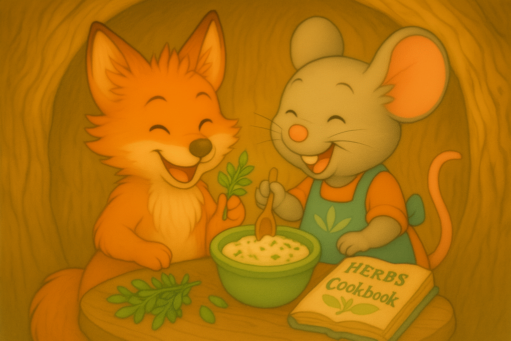 Eines Tages im Wald begegnete die Wildgrünmaus dem neugierigen, verspielten Wurzelfuchs. Seitdem sind die beiden beste Freunde: